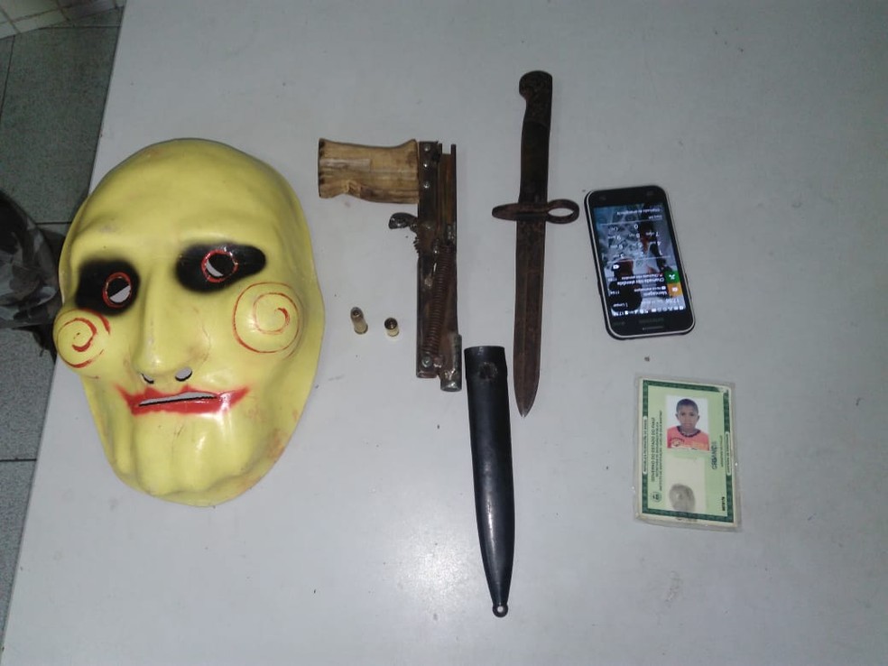 A equipe do 13º Batalhão da PM conduziu o suspeito para a Central de Flagrantes para os procedimentos legais. Com ele foram apreendidos um aparelho celular, uma bicicleta, uma arma de fogo de fabricação caseira, uma arma branca e uma máscara.