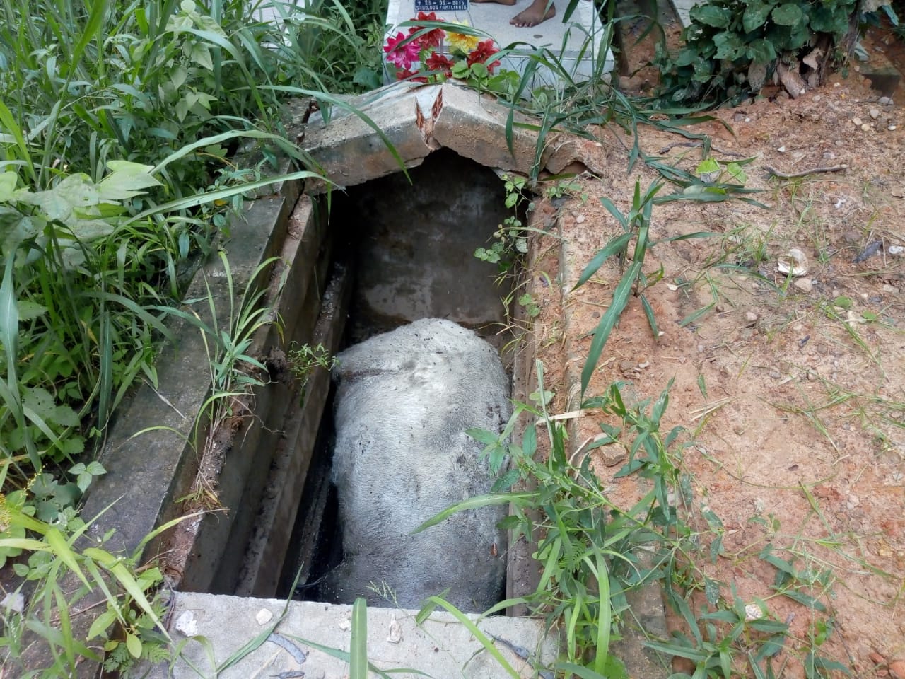 Os moradores do bairro e os coveiros só perceberam o cavalo morto dentro do túmulo na manhã de sexta-feira (1º). O coveiro Pedro Paulo diante da situação do cavalo caído na sepultura tentou lacrar o túmulo com o cavalo dentro, porque está exalando um forte mal cheiro para toda a região, mas os moradores do bairro se revoltaram com a atitude por achar que é um desrespeito ao túmulo e ao corpo de Raimunda da Silva Lima.