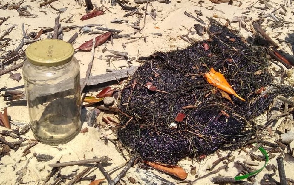 Material coletado com óleo será encaminhado à Capitania dos Portos — Foto: Pesca Solidária da Comissão Ilha Ativa