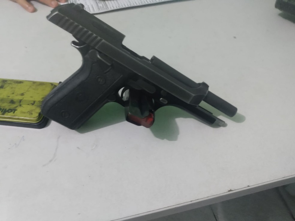 Pistola .40 que havia sido roubada de Policial Militar — Foto: Divulgação/Polícia Militar