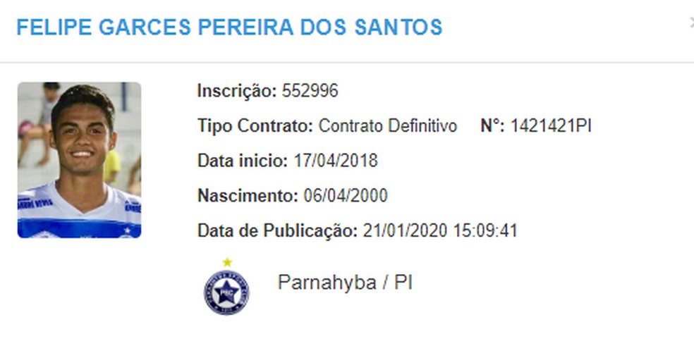 Felipe Garcês embarcou com a delegação azulina com destino a Teresina para o jogo de estreia do Campeonato Piauiense, mas ganhou condição de jogo apenas na terça-feira, quando o contrato com o Parnahyba foi publicado no Boletim Informativo Diário (BID), da CBF.