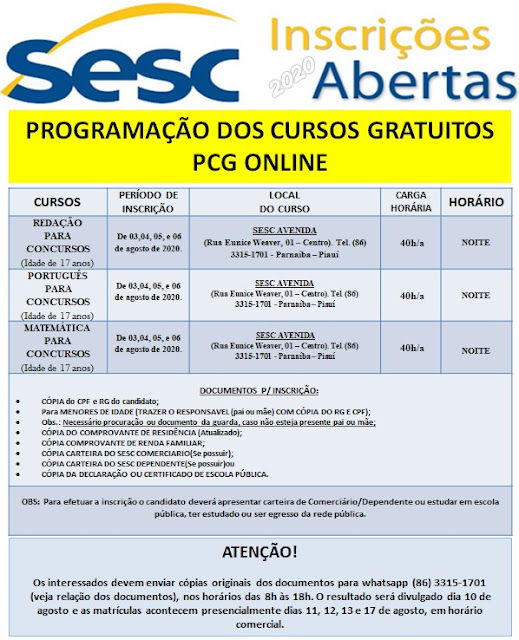 SESC AVENIDA - CURSOS GRATUITOS ONLINE