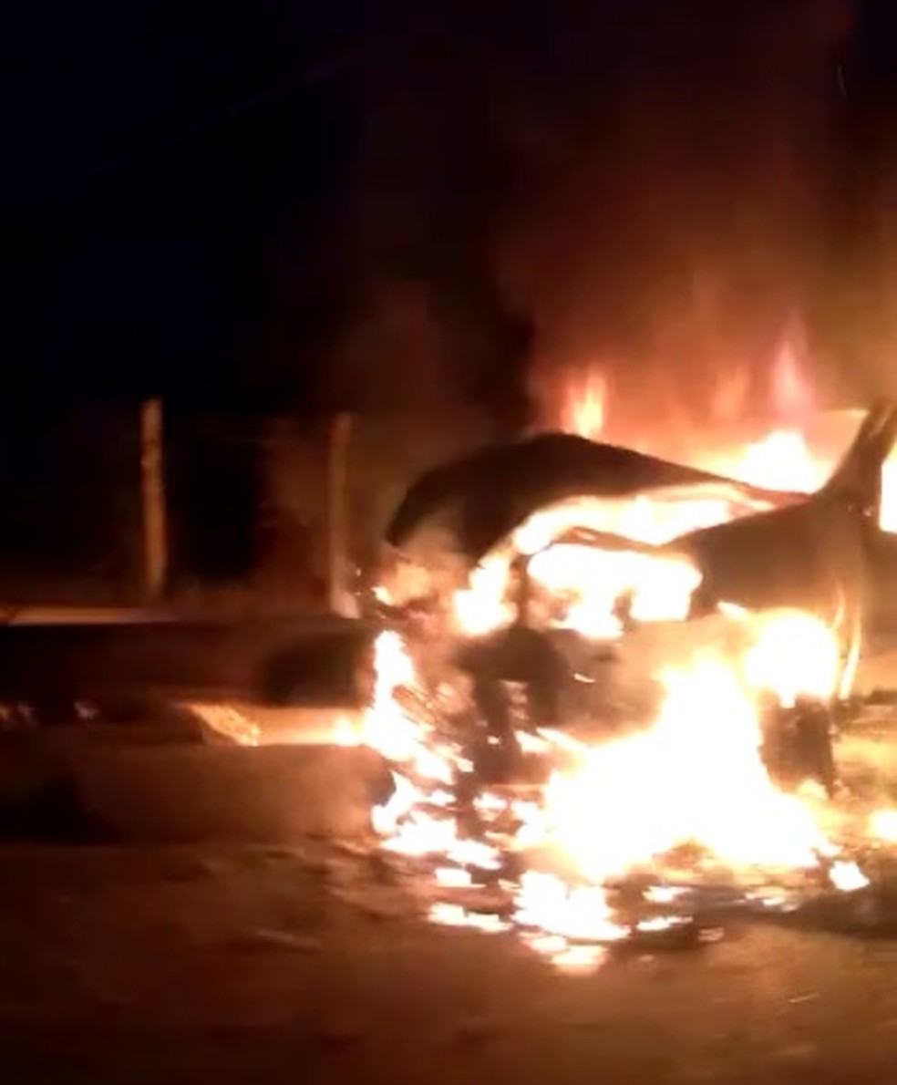 Um carro pegou fogo após derrubar um poste e provocar um segundo acidente na Avenida Doutor Manoel Aires Neto, entrada do Vamos Ver o Sol, Zona Sul de Teresina. As colisões ocorreram na madrugada deste domingo (4).