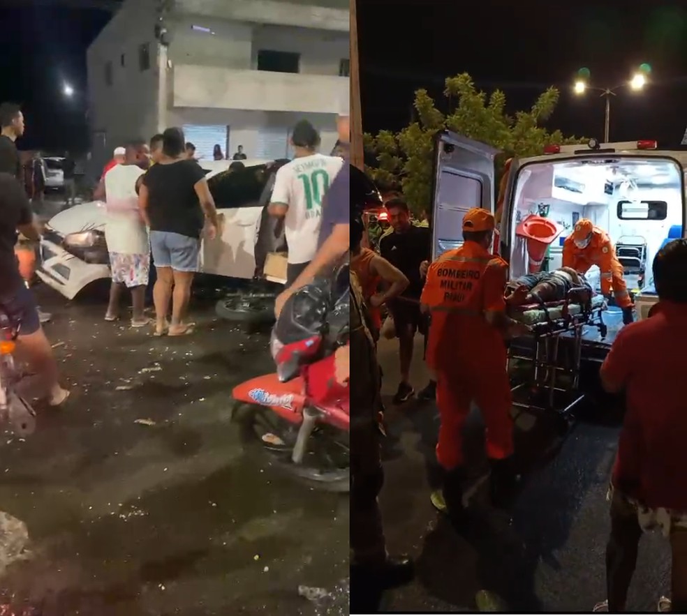 Quatro pessoas ficaram feridas na noite de sábado (18), resultado da colisão de um carro contra uma moto e uma bicicleta, na região da Santa Maria da Codipi, na Zona Norte de Teresina.
