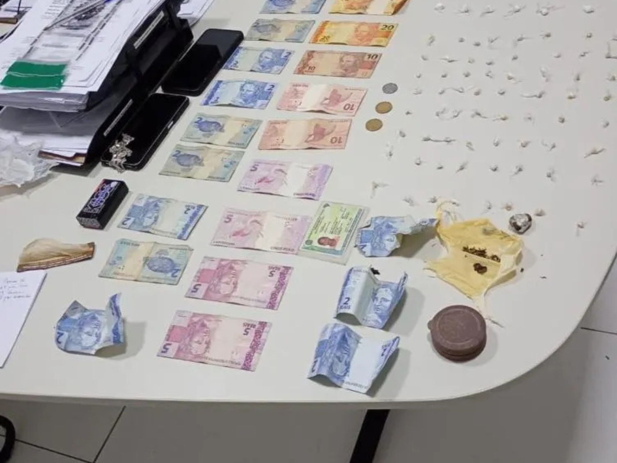 Durante a busca pessoal, os militares encontraram R$ 269,00 em dinheiro e uma grande quantidade de entorpecentes já fracionados para possível venda. Ao todo, foram apreendidos: