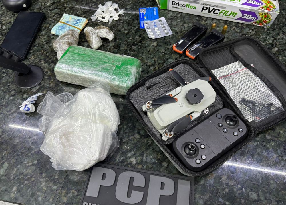 “Logo em seguida foi feito deslocamento à casa dele onde foi apreendida quantidade de maconha e cocaína significativa, além de um drone. Além do mandado, K.S. de S. foi preso em flagrante delito por tráfico de drogas e posse irregular de munições e acessórios”, informou o delegado.