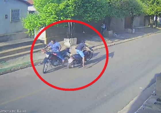 Imagens de uma câmera de segurança registraram o momento do acidente. O vídeo, obtido pelo RevistaAZ, mostra que um dos motociclistas seguia no sentido contrário da via quando ocorreu a colisão frontal entre as motos. Com o impacto, ambos foram arremessados ao chão.