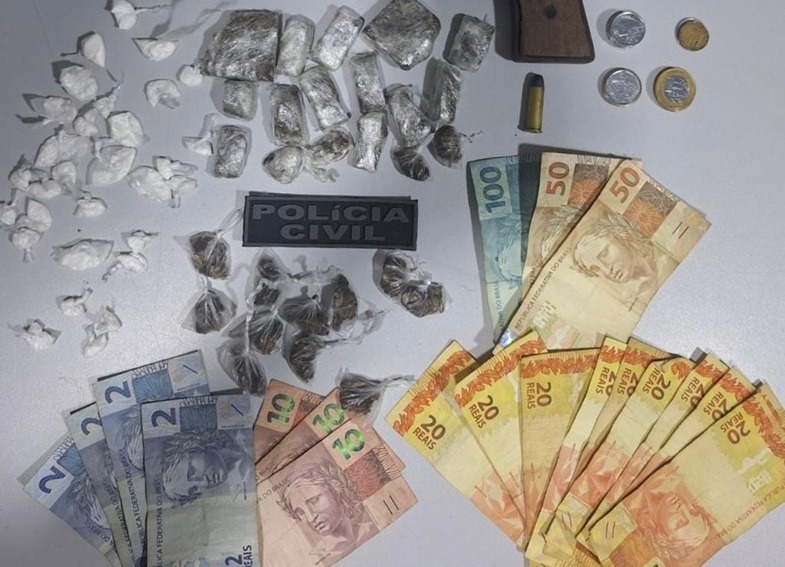 De acordo com o delegado Bruno Luiz Costa, o suspeito foi flagrado enquanto vendia entorpecentes dentro de uma residência. Durante a abordagem, foram apreendidos maconha, cocaína, uma arma de fogo, munições e R$ 514 em dinheiro.