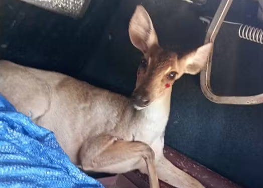Veado fêmea resgatado (Foto: BPA)Uma veada fêmea foi resgatada pela Polícia Ambiental no bairro Parque Eliana, na Zona Sul de Teresina, após ser encontrada em área urbana. O animal pode ter sido vítima de atropelamento.